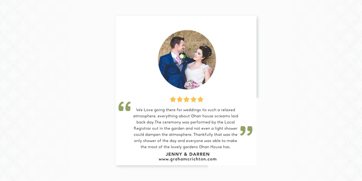 The service and staff were outstanding, including impeccable time keeping on the day. Everything ran smoothly, allowing us to fully enjoy ourselves. The venue itself is stunning – the house and garden are beautiful and create such a special atmosphere. Ghan House really feels like a sanctuary right in the centre of Carlingford, which is especially valuable on busy weekends when the town can turn into a crazy hotspot.